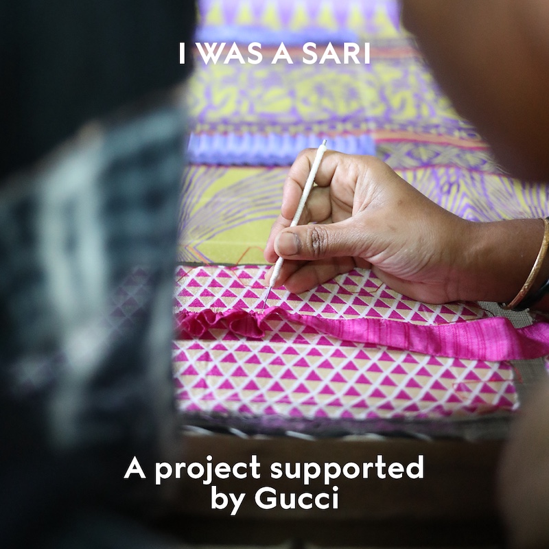 A notable collaboration for “I was a Sari” was The Gucci Equilibrium program, which focused on upcycling and social empowerment. The partnership began in 2018 with the goal of training Indian craftswomen in embroidery, a skill traditionally dominated by men. Together, they created a training module made freely available and for three years, Gucci procured Christmas gifts for VIPs and employees from “I was a Sari,” each year involving co-creation and idea exchange as part of the process.