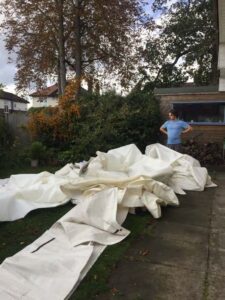 Most recently being commissioned to rework the Unpicking Couture exhibition banners from the Manchester Art Gallery. This collection will see the giant outdoor marketing banners, featuring some of the couture pieces inside its exhibition, transformed into a one-off YoYo limited collection, timed to coincide with the gallery’s upcoming sustainability exhibition due to launch next year 2026, and to be sold in their gallery store, allowing visitors to celebrate the beauty of this much loved exhibition.