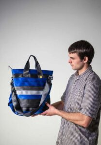 This sensitivity to context carries through to the materials Munro works with. By reworking exhibition banners into functional products, his approach questions how we assign value to materials. “To most people, what I make my product out of is worthless, but seatbelts, for example, have amazing properties.” For Munro, sustainability isn’t a buzzword, but a key part of his design process. As he puts it, “The best compliment is when someone doesn’t know the product is made from repurposed material and they just love it anyway.”